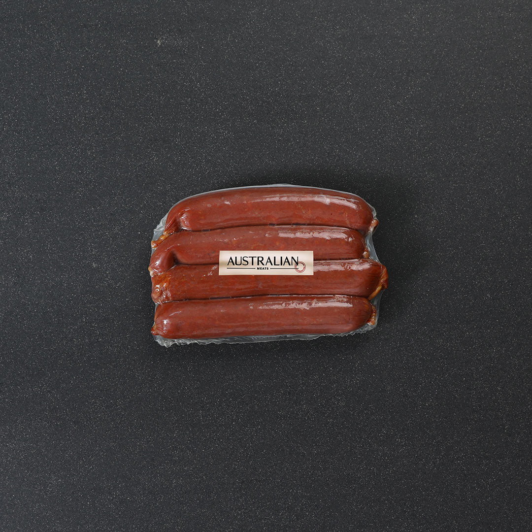 Seasoned, smoked and cooked, these exceptional Kransky's are made using Paroo Premium Kangaroo and blended with quality ingredients and mozzarella cheese. Made by our friends at award winning Goodwood Quality Meats in South Australia.