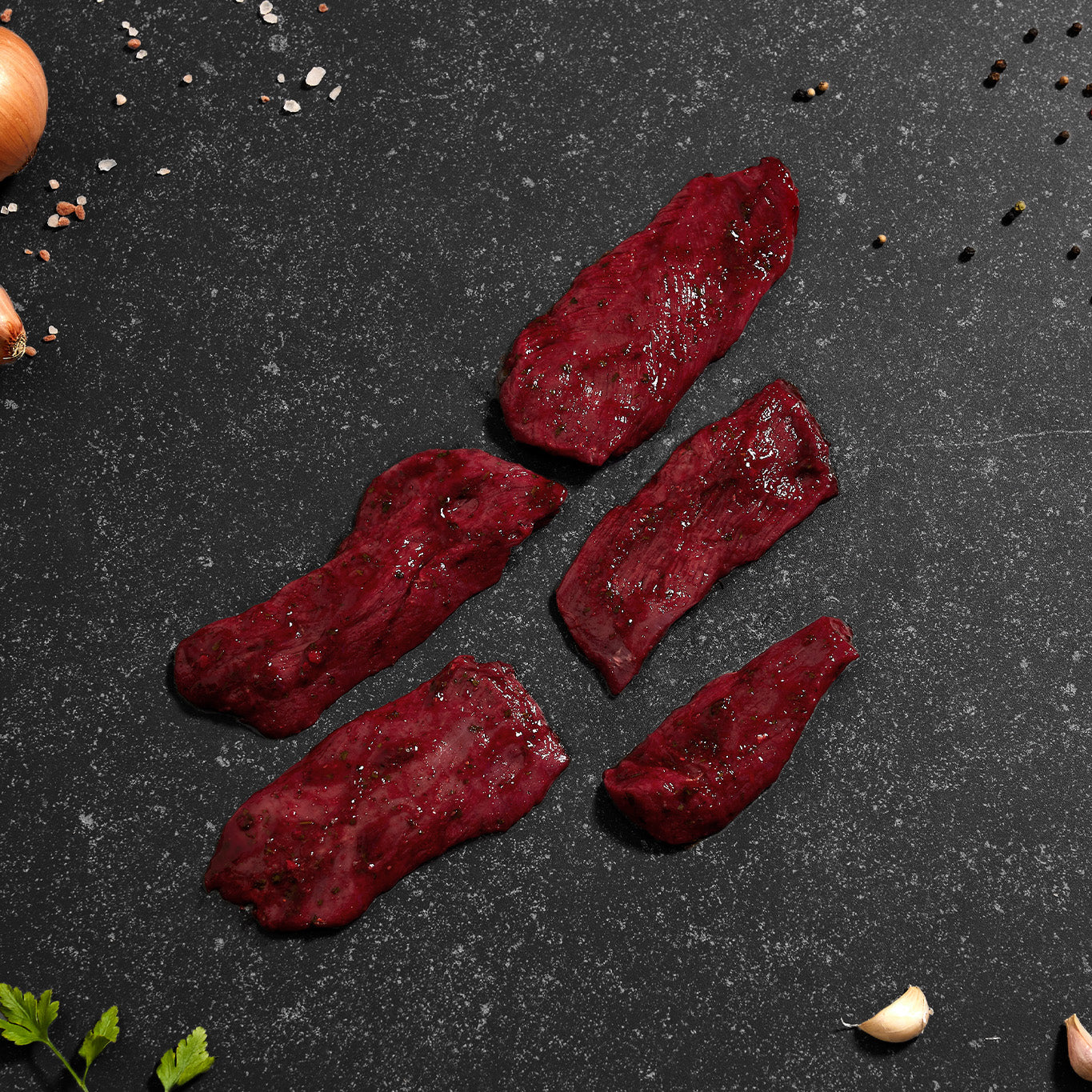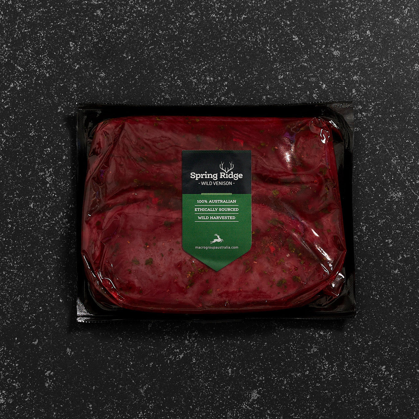 Spring Ridge Wild Venison red wine and garlic steak has been marinated for your convenience and are ready to throw on the barbie.