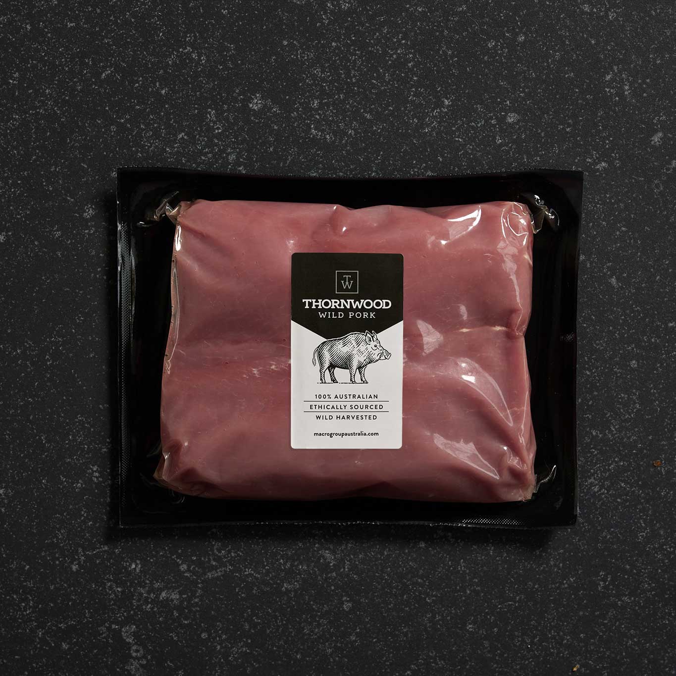 Australian Wild Boar is lean and tasty due to their natural diet of nuts, berries and native vegetation. They are free to roam without confinement and are ethically harvested in their own environment, producing a naturally tender and flavoursome pork. The Thornwood Wild Pork Backstrap is juicy and lean and is easy to pan fry, grill or bbq.